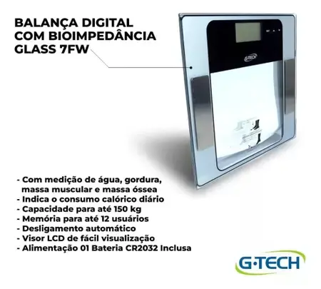 BALANÇA DIGITAL G-TECH MODELO GLASS 7 FW